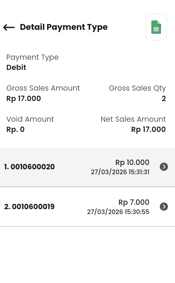 Reff Number akan ditandai dengan huruf V ketika berhasil melakukan void item dan status akan berubah menjadi refund sebagian. Jika berhasil melakukan void bill status berubah menjadi Pengembalian dana.