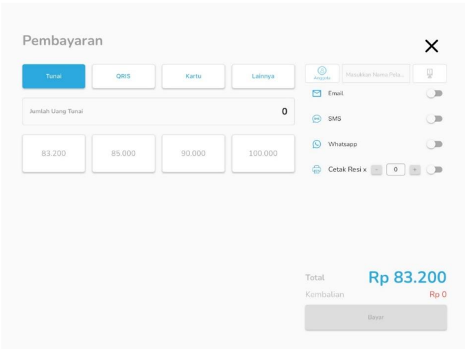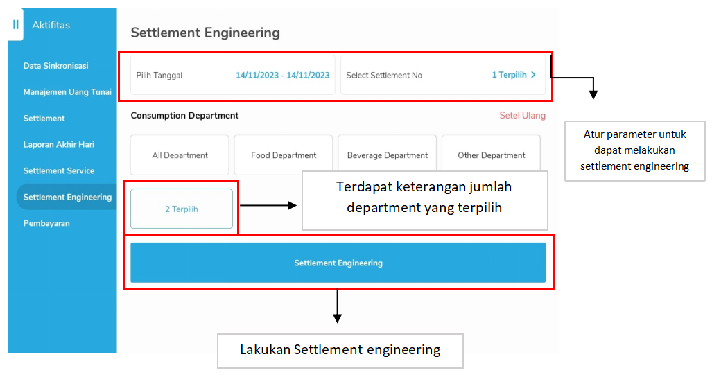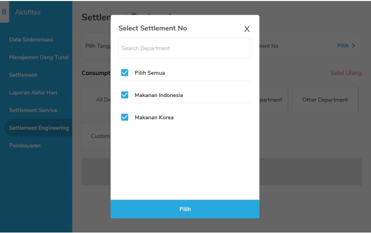 Sedangkan jika user menggunakan pengaturan settlement Non-Preview, maka user harus menginput dulu nominal uang tunai, lalu user dapat melakukan settlement.
