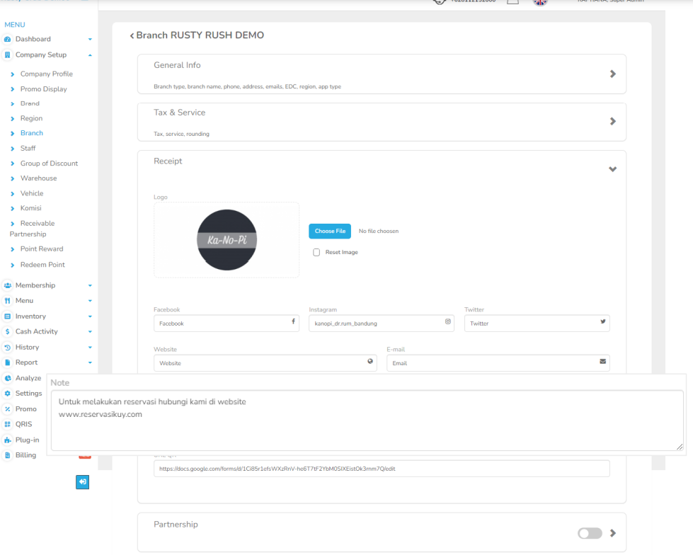 Pada versi ini telah dilakukan perbaikan pada reservasi dine in yaitu DP berubah jadi total di detail meja, ketika melakukan reservasi tanpa item.