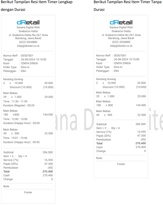 H. ITEM TIMER - Perbaikan Detail Timer tidak muncul pada single kasir