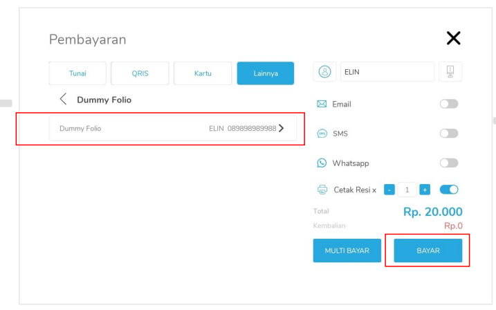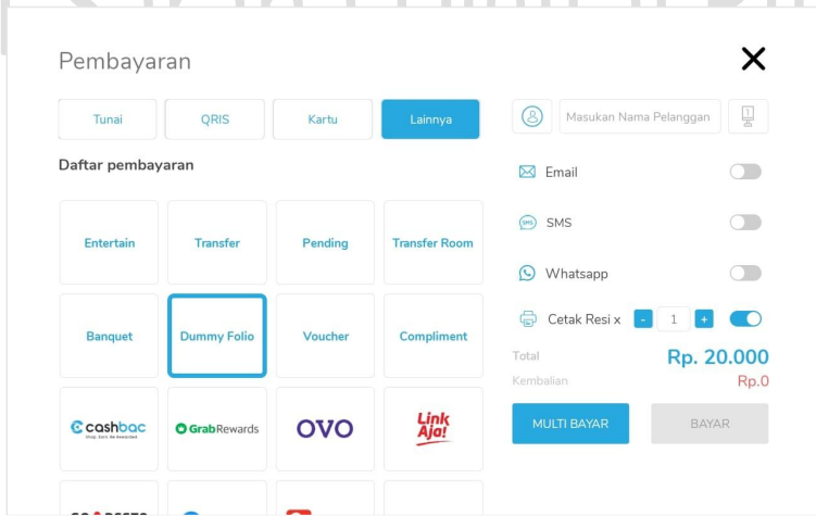 Pada versi terbaru ini, pembayaran menggunakan metode Compliment hanya dapat digunakan untuk Single Payment. Sedangkan untuk metode Multi Payment, metode Compliment ditiadakan.