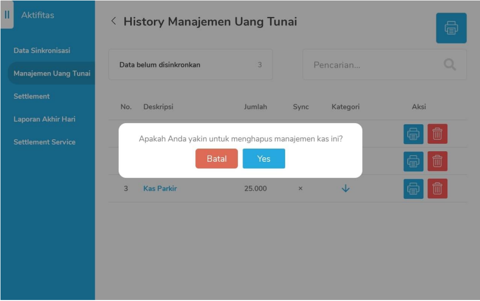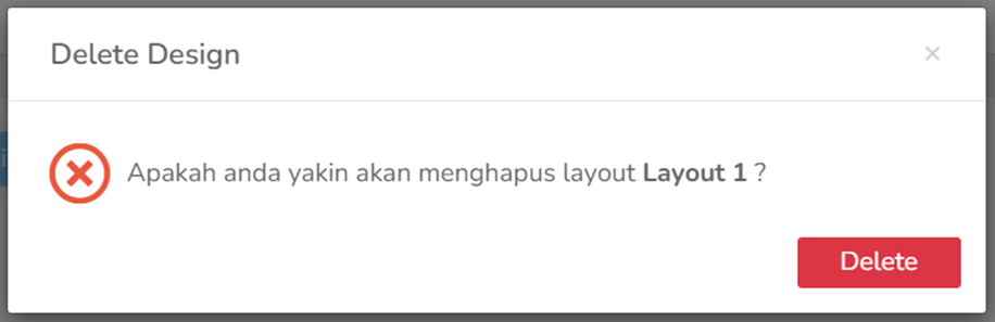 Layout dapat di hapus, dan ketika di hapus akan muncul popup konfirmasi sebagai berikut: