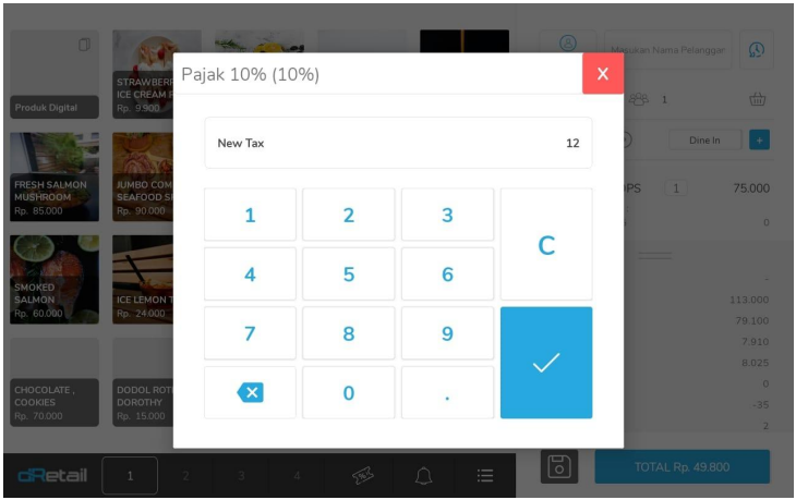 Flow : Login Tablet > Lakukan Transaksi > Ubah Tax dan Service pada detail