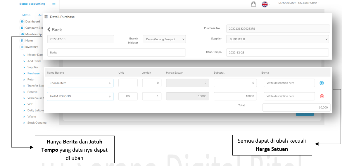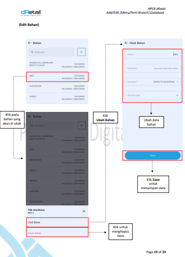 Fitur Inventory ini berfungsi untuk mendata seluruh pencatatan bahan baku dan item lainnya yang ada di gudang Anda. Berikut fitur-fiturnya:Caranya :