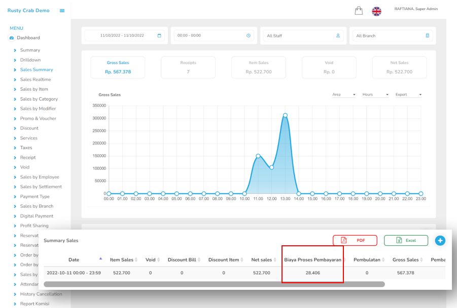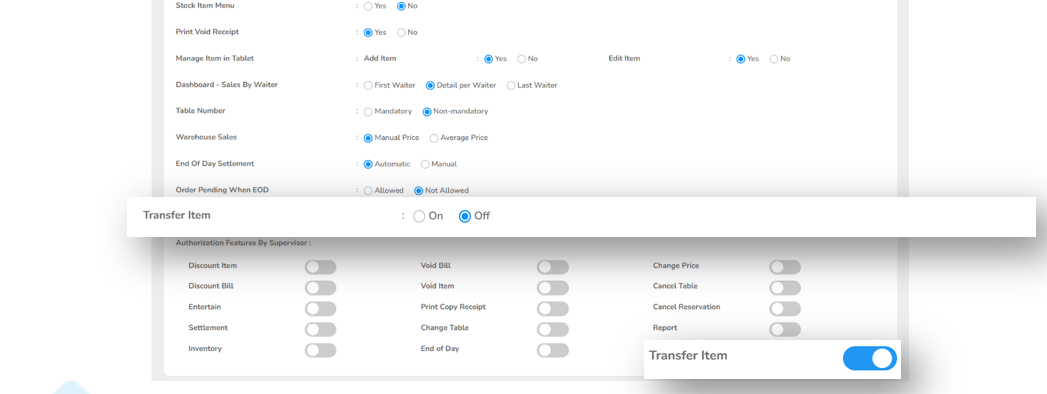 Setting >Setup > Dashboard – Sales by Waiter Pengaturan ini mengacu pada data history transaksi, apakah yang di tampilkan adalahorangpertama, orang terakhir, atau detail history pertransaksi.