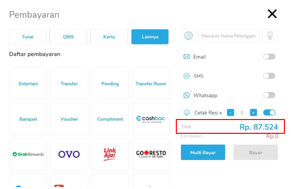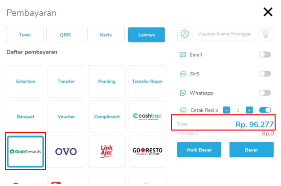 2. Ketika "Pembayaran" pilih metode lainnya lalu pilih "Banquet"