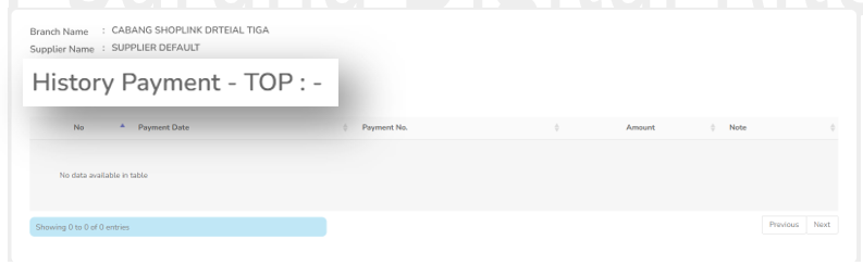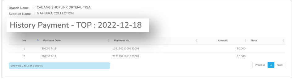 Berikut tampilan history transaksi