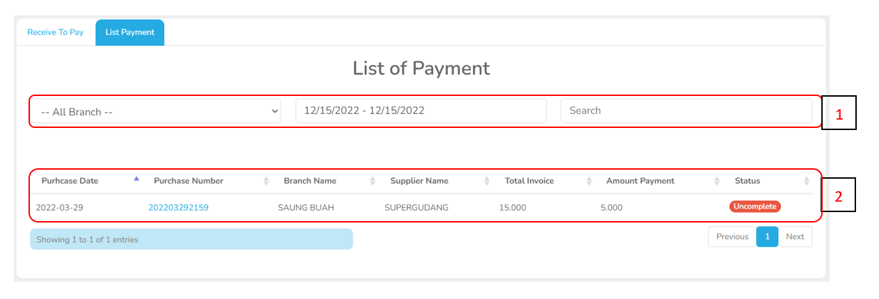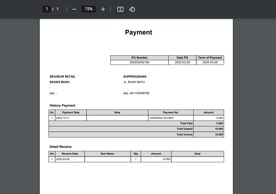 Untuk melihat history dapat dilihat di Dashboard > Receipt