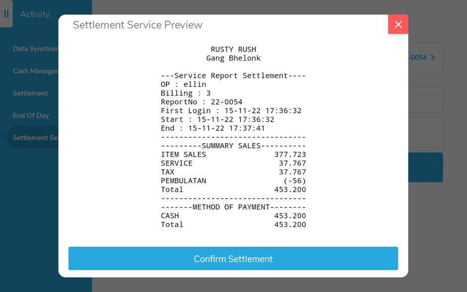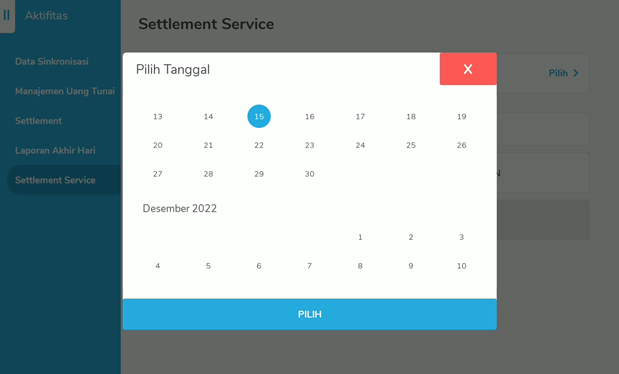 Jika settlement dilakukan dari jam tutup s/d jam 23.59 maka data yang di posting adalah hari H