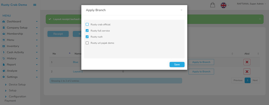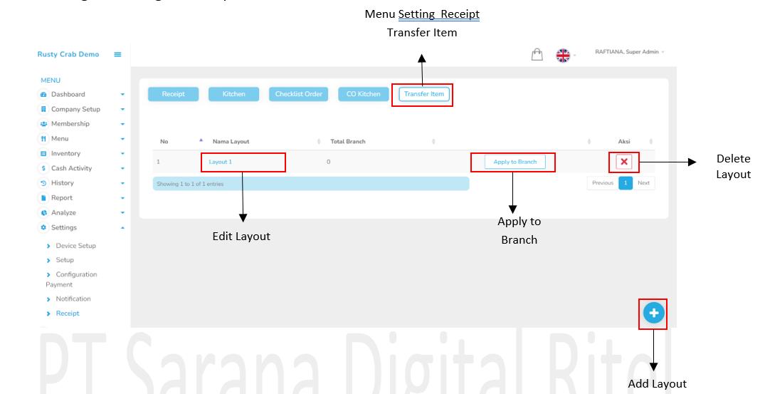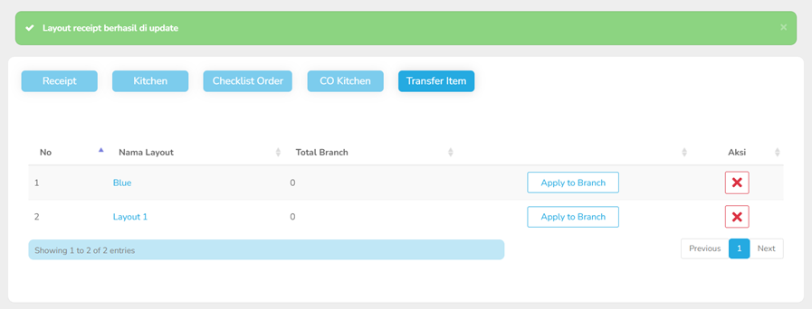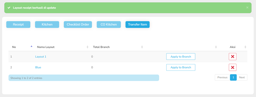 1 Branch hanya bisa menerapkan 1 layout resi, sedangkan 1 Layout dapat di terapkan di beberapa branch.