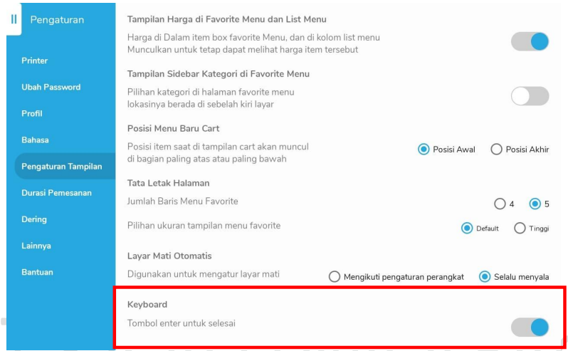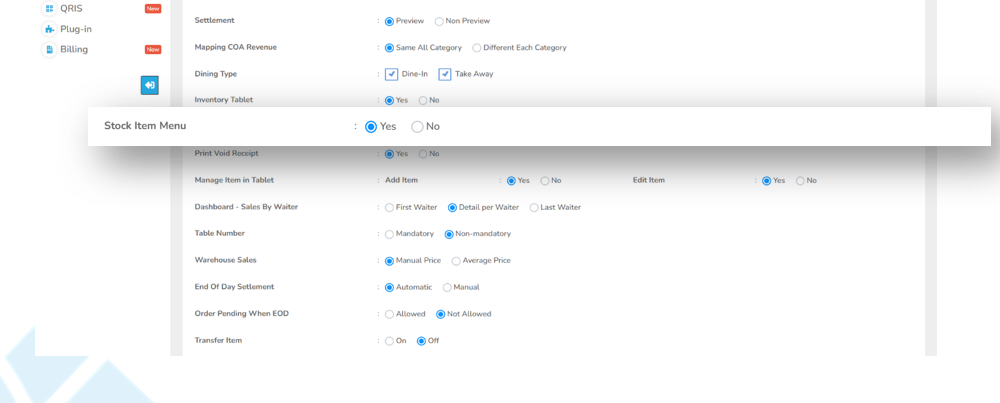 Jika parameter di setting “On” di web admin, maka pada tablet penjelasannya adalah sebagai berikut: