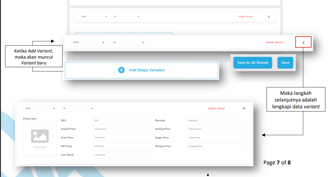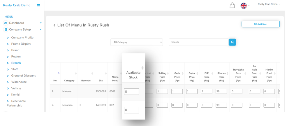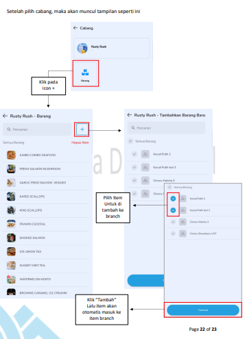 Jika Anda mempunyai beberapa cabang, Anda bisa mengatur Item per Branch. Anda juga dapat menambahkan discount item yang sedang dijalankan dalam Branch.Caranya :