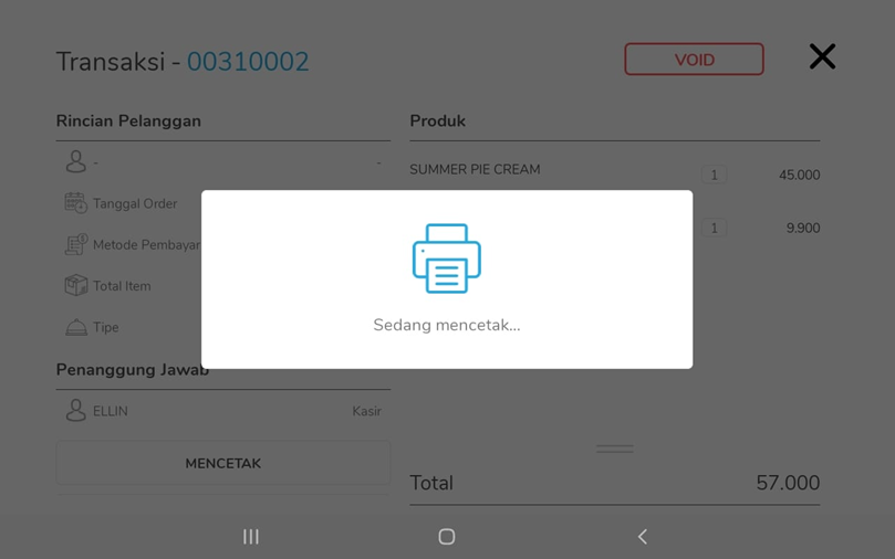 Ketika melakukan transaksi print resi, maka sistem akan mencetak sesuai kuantiti