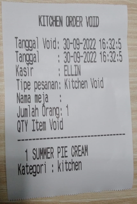 Maka ketika melakukan transaksi, sistem akan melakukan cetak CO Kitchen setelah mencetak resi bayar, seperti dibawah ini :