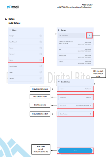 Tambahkan bahan baku jika perlu, setelah itu klik “Simpan”