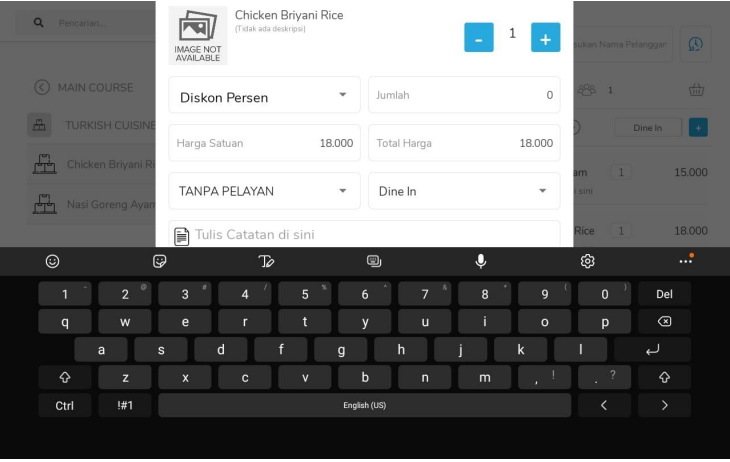 Fitur ini berfungsi untuk menjadikan item sebagai compliment dan juga input diskon dengan cara yang lebih mudah.