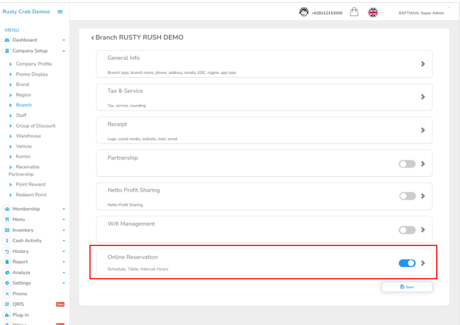 Pada halaman backoffice, Pilih Setting > Setup > Sales Overnight