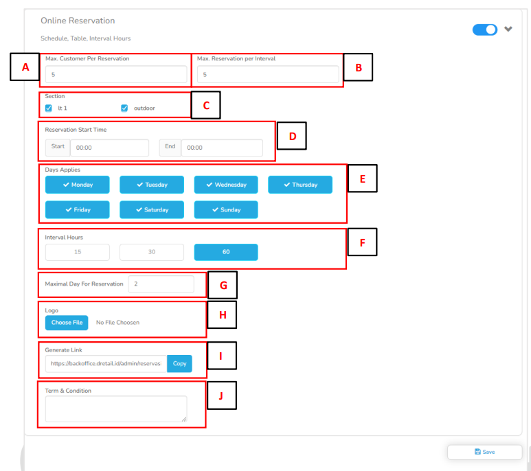 Atur toggle Overnight Sales Report menjadi “On” lalu setting jam buka dan jam tutup, seperti berikut :