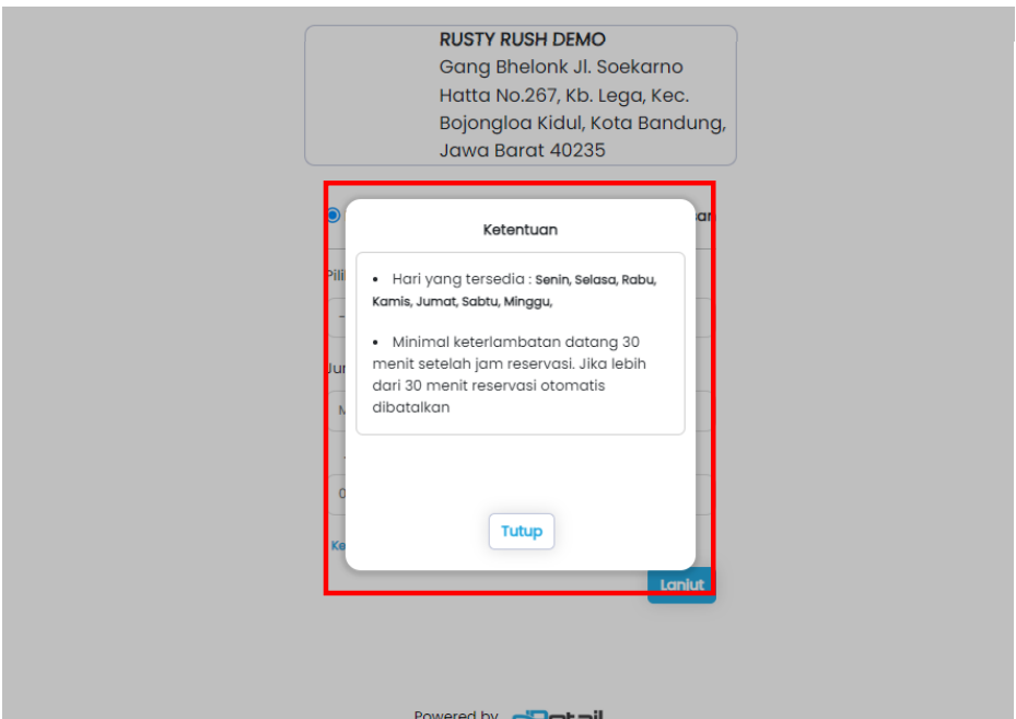 6. Jasa : pilih dari jasa “Service” yang telah ditambahkan di web admin