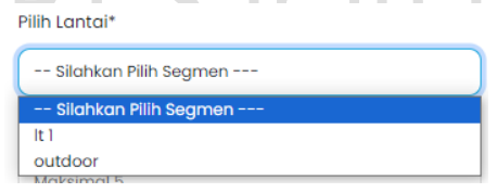 Maka tampilan pilihan ruangan jamuan adalah sebagai berikut: